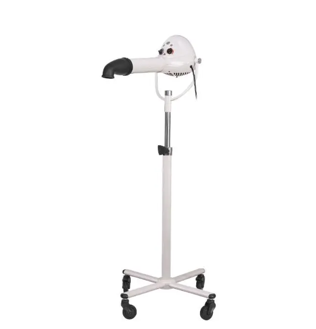 この中古のドライヤーはヘアドライヤー(下)です。このデバイスは、スタンドに置かれた巨大なヘアドライヤーのように見えます。速度と気流が可変で、温風または冷風を吹き出すことができ、取り付けるとグルーマーの手を解放してブラッシングを行うことができます。ふわふわのヘアドライヤーはショードッグのグルーミングに由来し、伝統的にカーリーコートのショードッグを毛づくろいしてふわふわでまっすぐにするために使用されていました。被毛を十分にまっすぐにするためにも重要です。